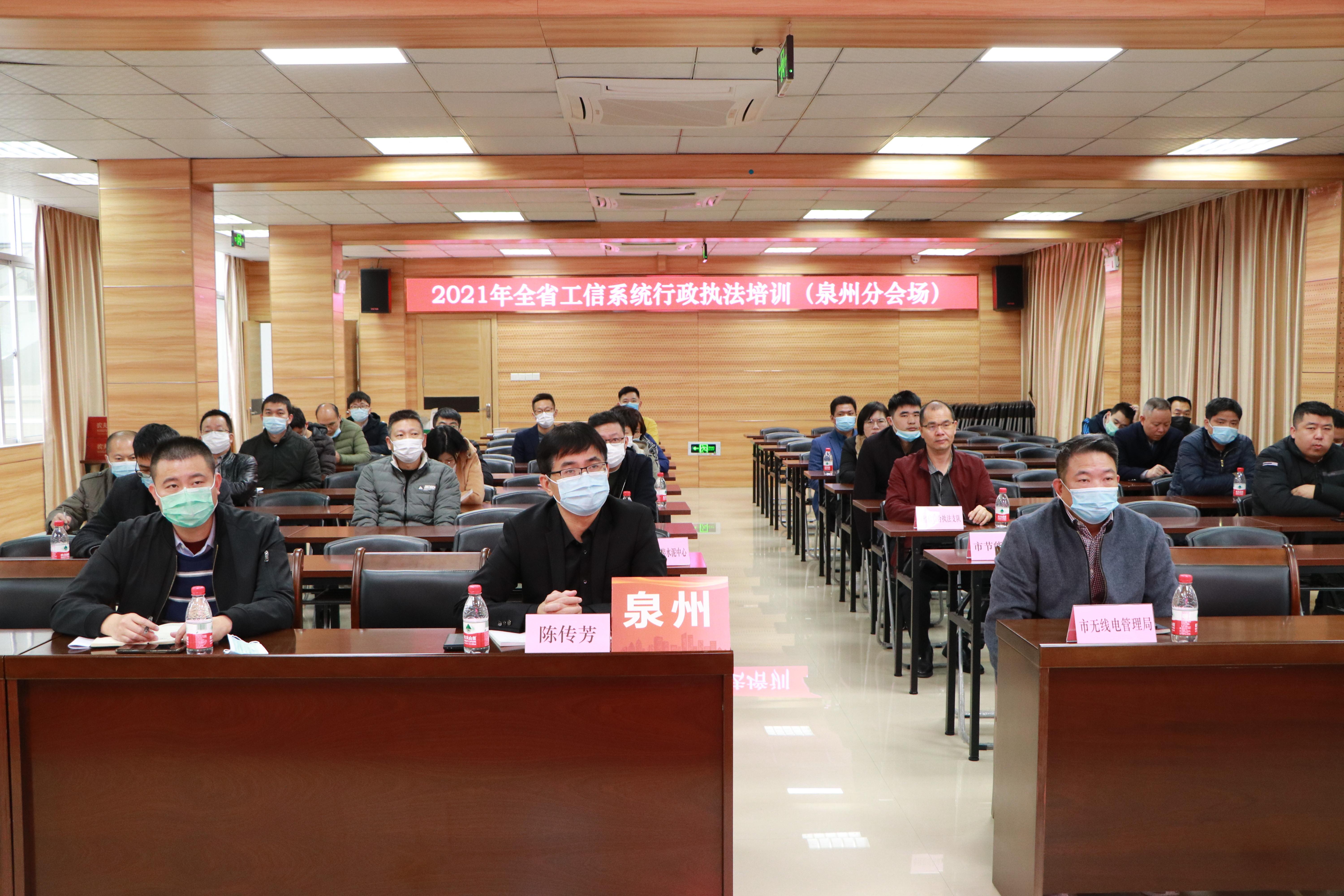 为深入贯彻落实习近平法治思想,进一步提升工信系统行政执法水平,近23日,泉州市工信局组织全市工信系统85名行政执法人员参加全省工信系统行政执法视频培训,市工信局和经信综合执法支队、节能监察中心、中小企业服务中心、工信服务中心、建材和散装水泥管理中心等单位的行政执法人员35名在泉州市分会场参加线下培训,其他行政执法人员通过腾讯会议形式参加线上培训。